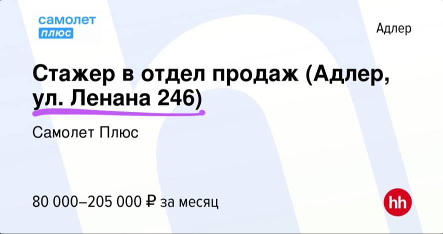 Об этом мы узнаем из свежей вакансии Самолет-плюса.