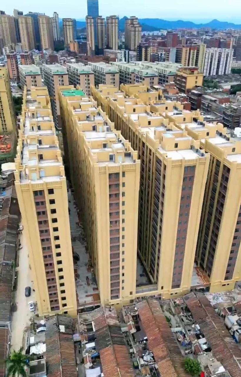 Многоквартирные дома в Китае, расположенные на расстоянии 8 метров друг от друга. Город Цзеян, провинция Гуандун, Китай.
